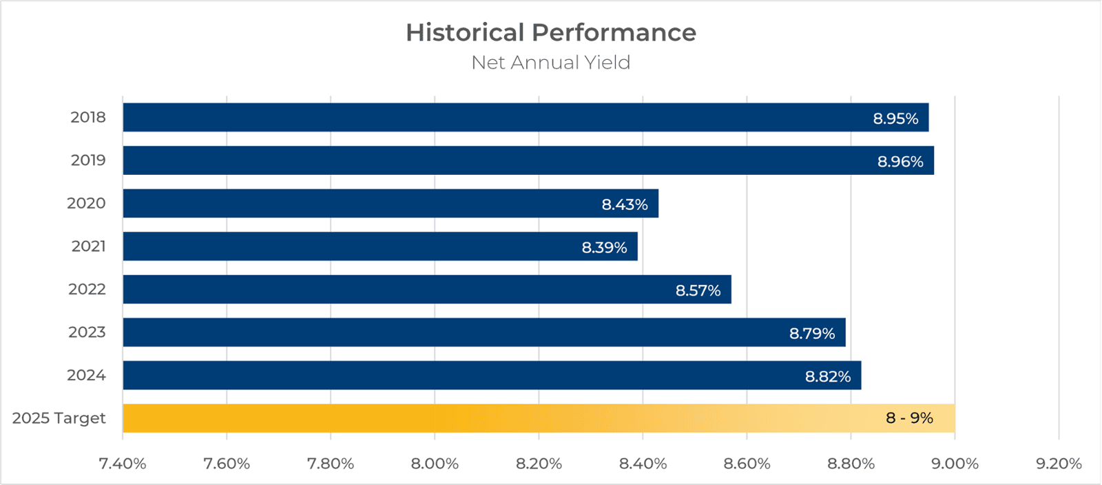 The MIC's focus is on selecting high-yield short-term mortgages, typically not exceeding a weighted portfolio of 75% LTV, while providing an attractive return to our investors.